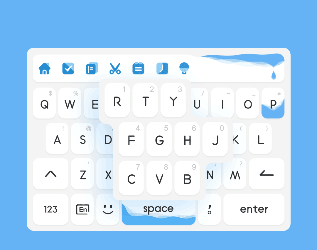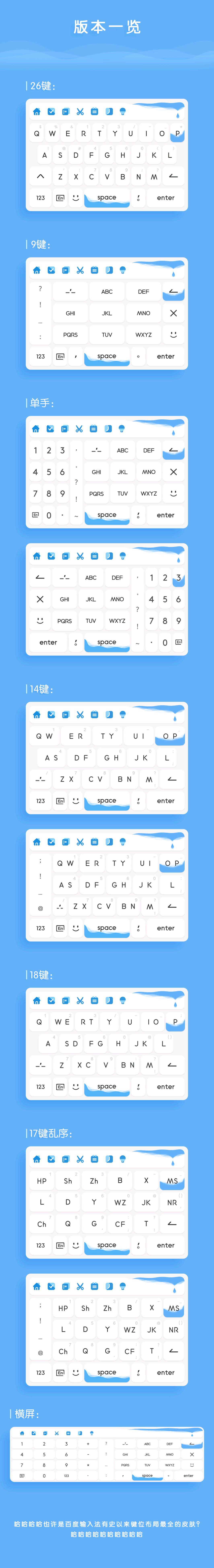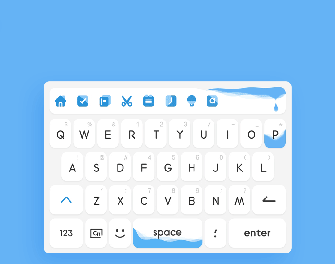 ⚠️ “水滴容器”按键丢失的问题请升级输入法至“官方最新版”解决 / 无法进入Emoji表情请更换官方皮肤选择Emoji后再启用本皮肤。